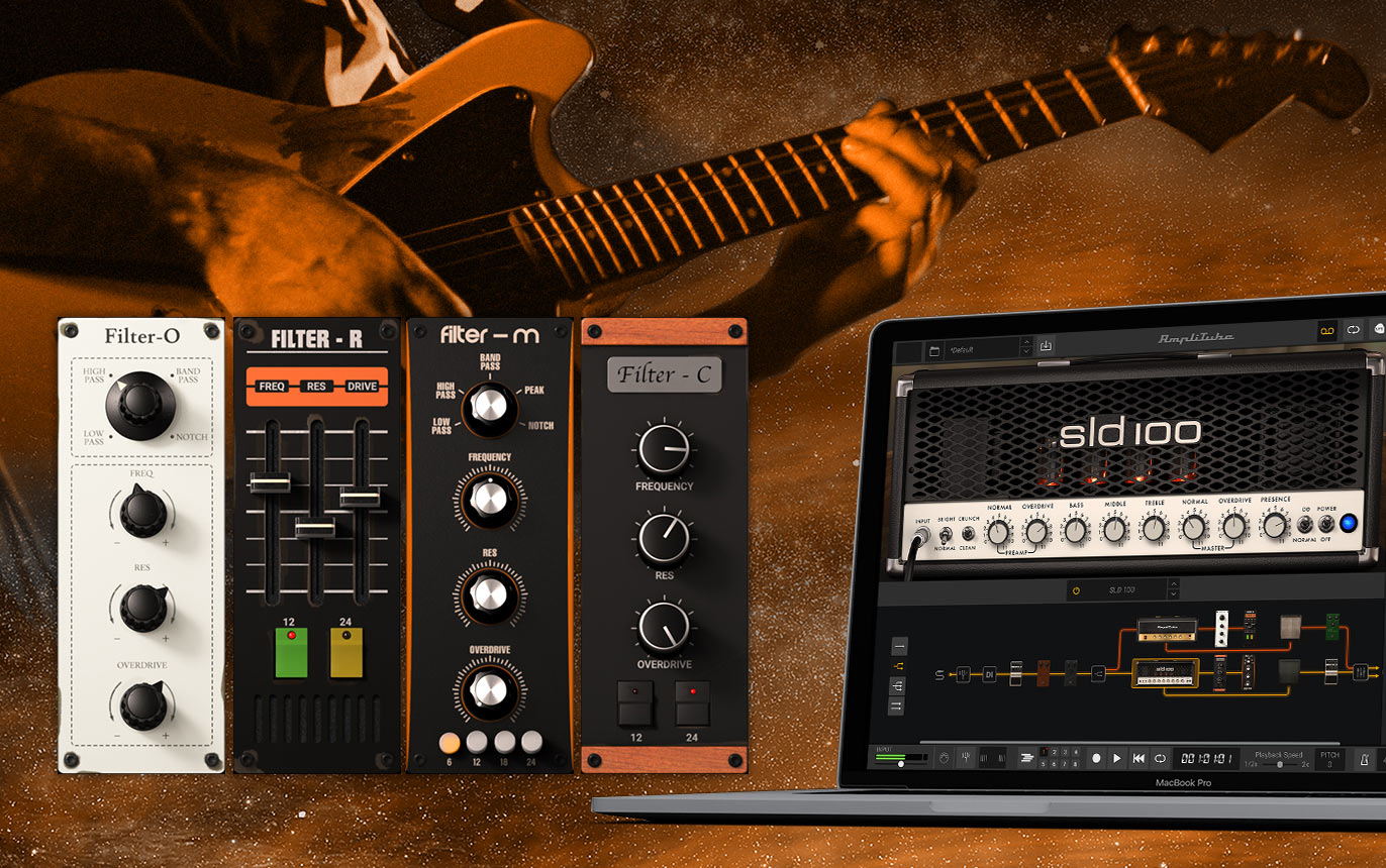 New Filter C, Filter M, Filter O and Filter R rack effects are now available for free for all AmpliTube 5 and AmpliTube 5 MAX users and are purchasable a la carte via Custom Shop for all other users.