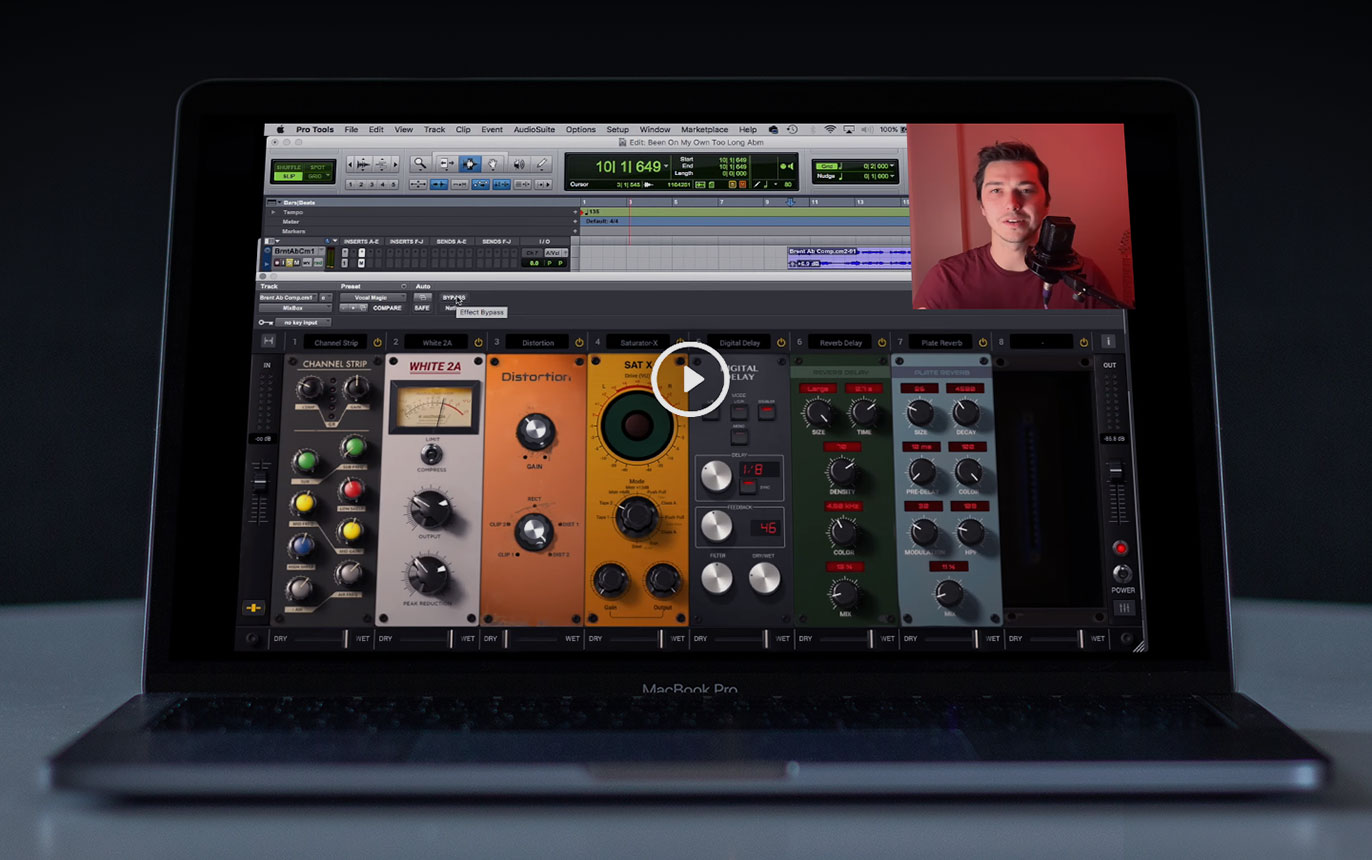 "So, we've got a channel strip, a 2-way compressor, distortion, saturator, digital delay, reverb delay, and plate reverb. That's 7 plug-ins in one plug-in. And it saves so much time because all I've got to do is click right here. It's so fast, so easy and so intuitive. It's got to be one of my new favorite plug-ins.