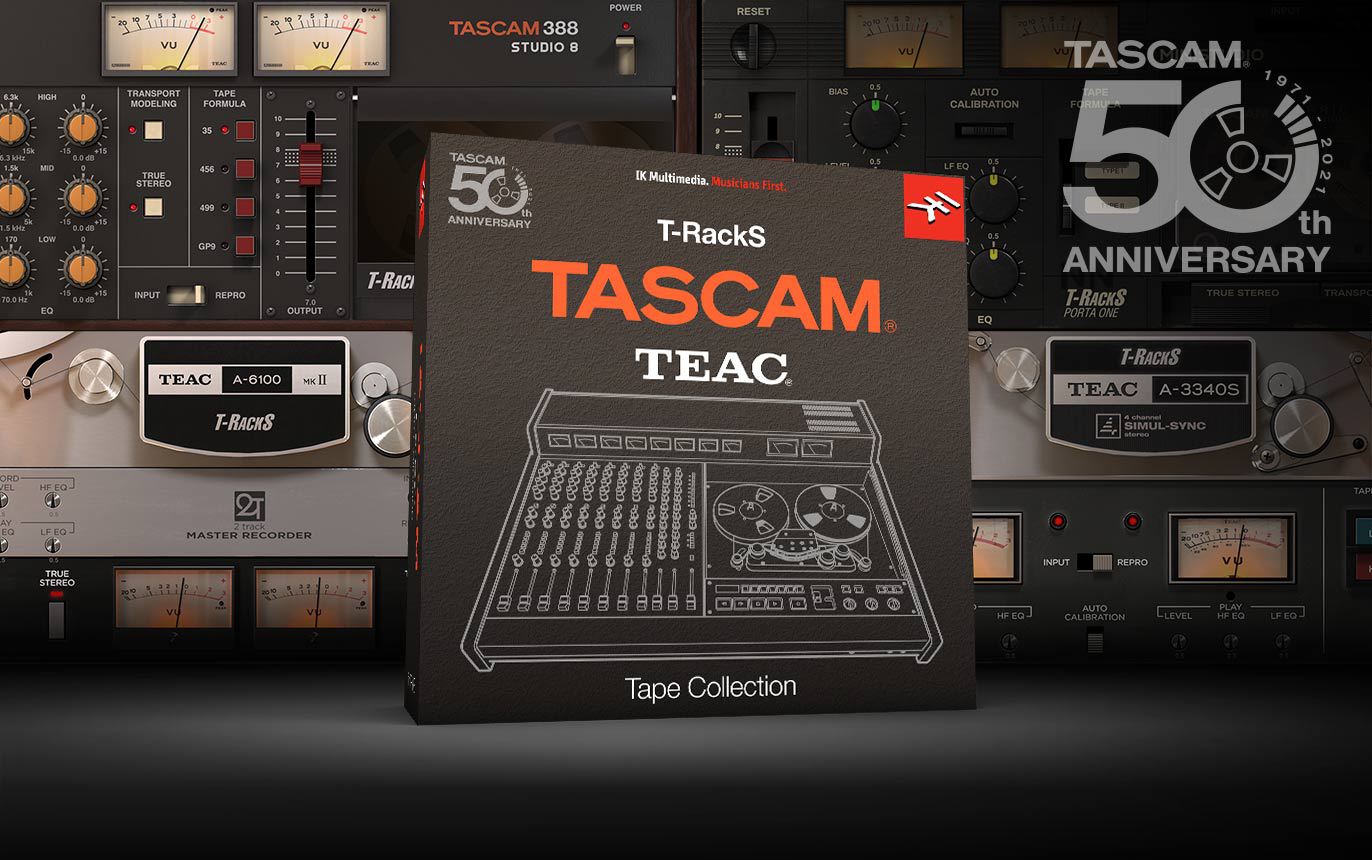 October 12, 2021 - IK Multimedia is pleased to announce the T-RackS TASCAM Tape Collection, a collection of AAX, VST and AU plug-ins for mixing and mastering. The new T-RackS TASCAM Tape Collection draws upon the strengths of four meticulously restored TASCAM analog recording systems long recognized for their glorious tone and other audible hallmarks.