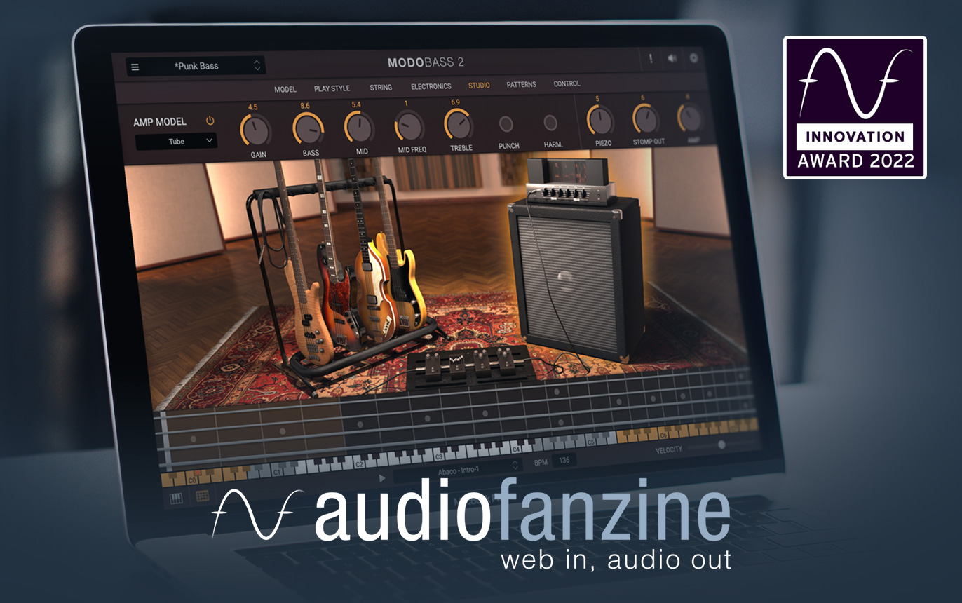 The French-speaking audiofanzine posted a thorough review of MODO BASS 2, giving it a score of 9 out of 10 and their "Innovation Award 2022." The review explains all of MODO BASS 2's new features like the fretless basses and grooves section and why it deserves to be your "go-to" bass.