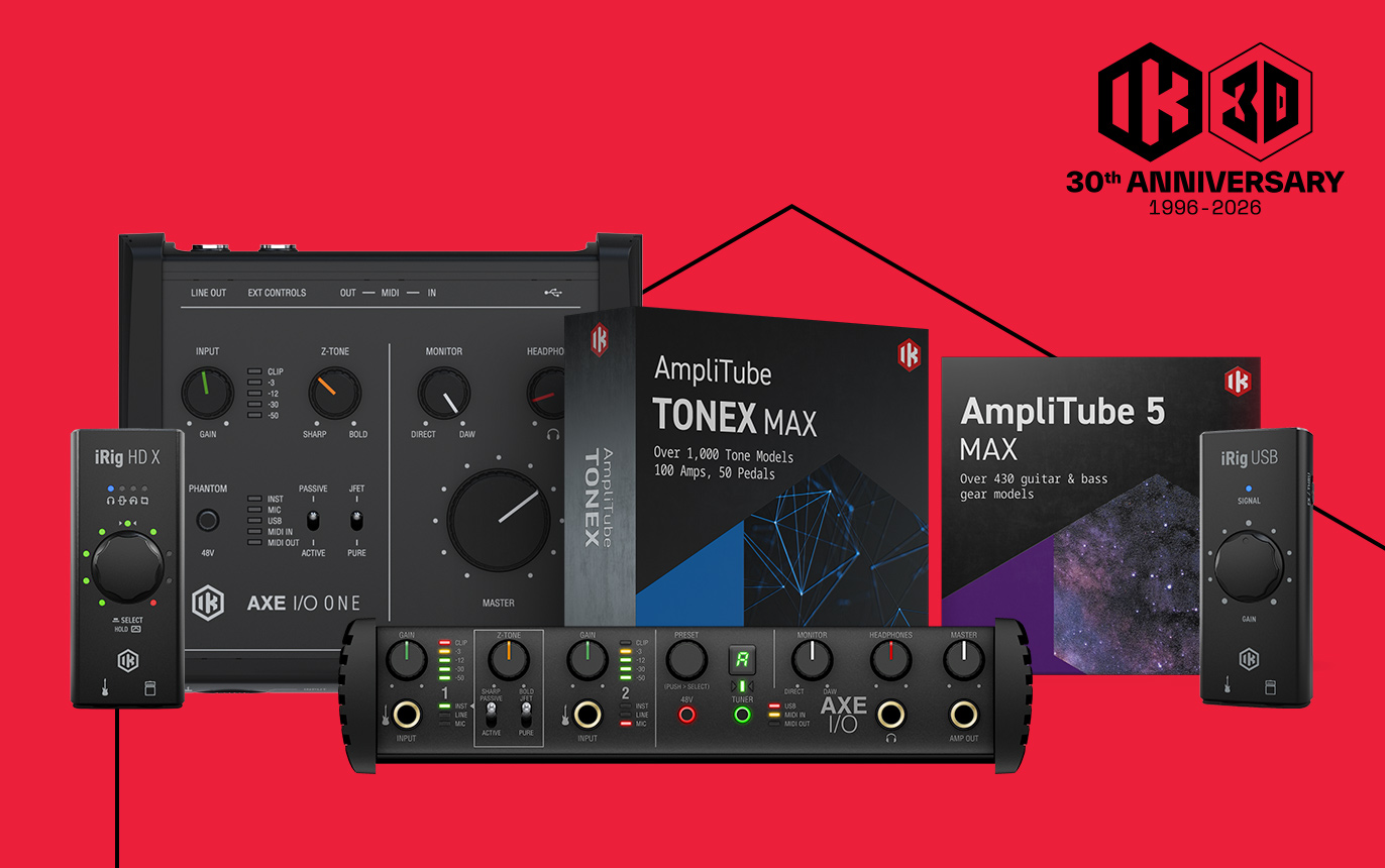 As part of IK's 30th Anniversary celebration, upgrade your signal chain with exclusive savings on iRig and AXE I/O interfaces.