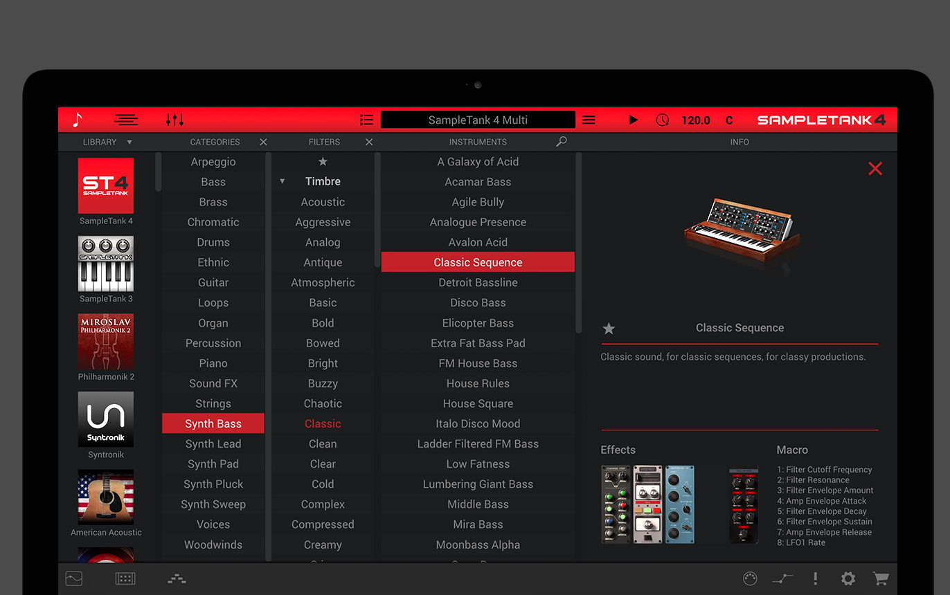 SampleTank 4 brings many new, exciting features with its fully redesigned interface. One of our favorite features is the new Live Mode that makes it easier than ever to assemble and prepare live sets and performances. The talented Edward Bocanegra uses SampleTank 4 for live looping to create a full piano track from scratch. This composition is seamlessly put together, drawing sounds from the 260GB of included sound content. See below.