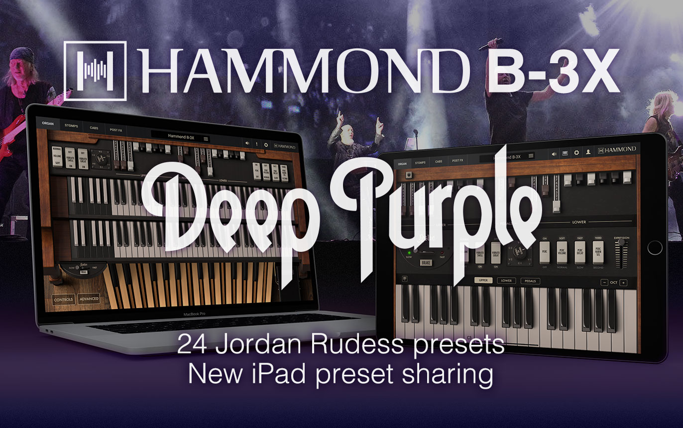 Jordan Rudess recently took the stage with Deep Purple for a festival performance in Mexico City using Hammond B-3X as their sole organ instrument. With great success, the Hammond B-3X fit seamlessly into the performance, nailing every organ sound the band has built their sound upon. Jordan and IK product manager, Erik Norlander, created 24 custom presets for the show with the idea to also release them to all Hammond B-3X users. The presets are automatically installed with the 1.3 update. Check out more from the show here.