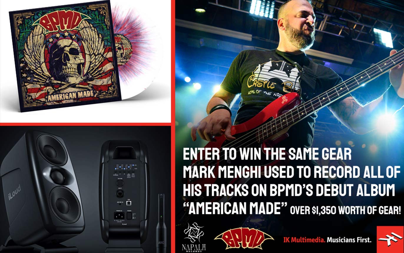The leader in mobile music making, IK Multimedia brings you the opportunity to win the same gear Mark Menghi (BPMD / Metal Allegiance) used to record all of his tracks on the debut BPMD album “American Made” . One lucky winner will receive the following, which is over $1,350 worth of gear: