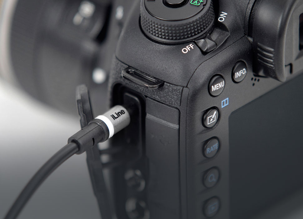 The iLine Camera Adapter works by sending the mono microphone signal from the iRig Mic model or iRig Pre or iKlip A/V TRRS output to both the left and right channels of the TRS stereo input on your camera. This provides full, rich audio content with less background noise and full range frequency response.