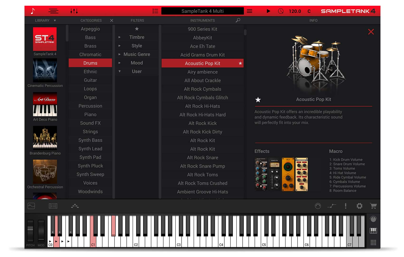 New Latin instruments, from conga, timbale, cajón and more were immaculately recorded to fit today’s modern styles. SampleTank 4 expands an already comprehensive library to offer fresh sounds captured from top performers and recorded using the latest techniques for unmatched authenticity.