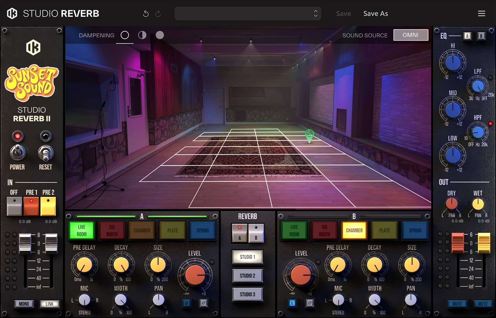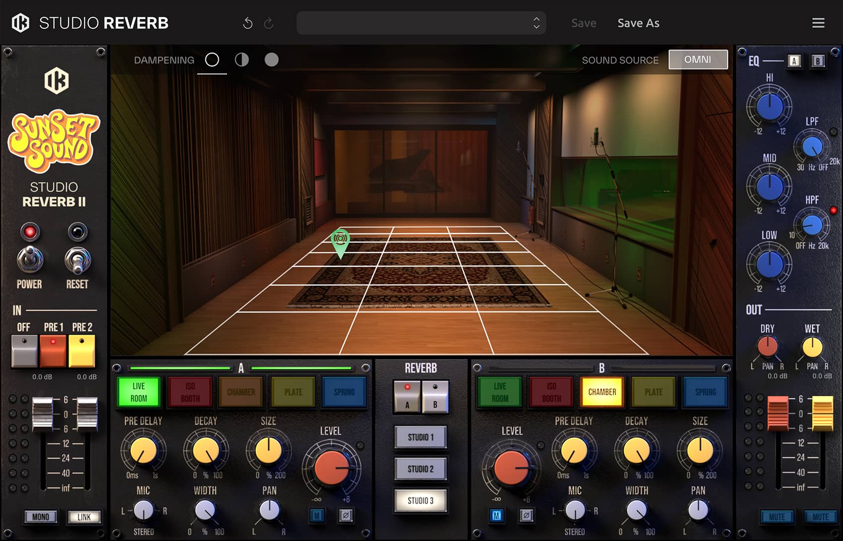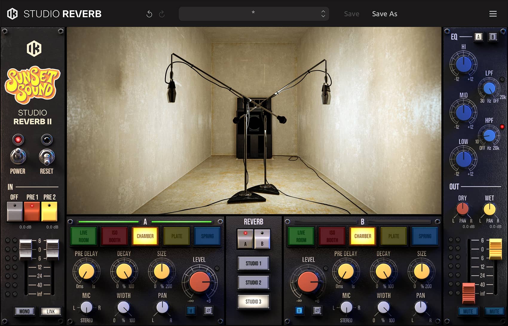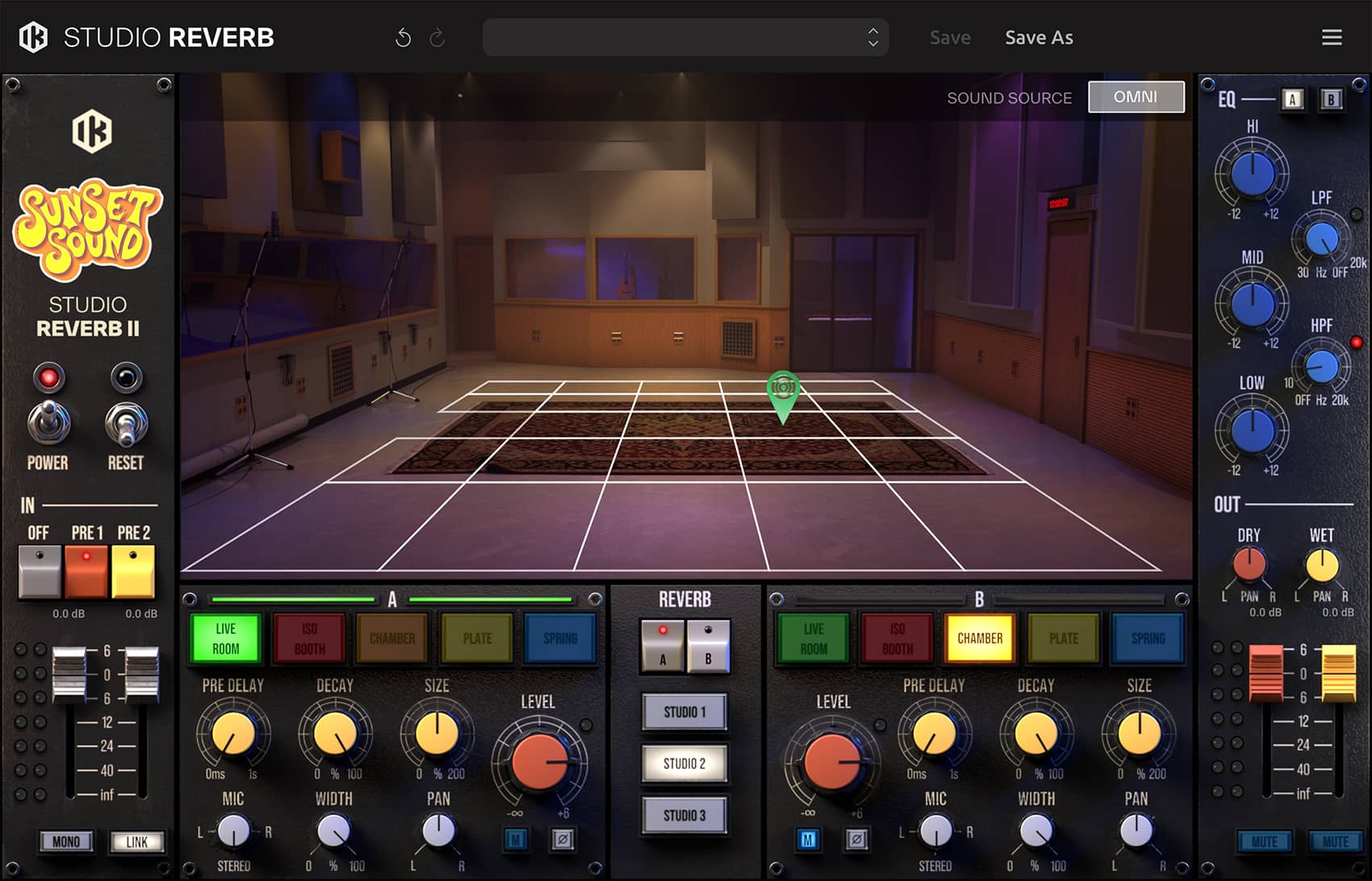 Sunset Sound Studio Reverb II features a fully independent dual-engine design.