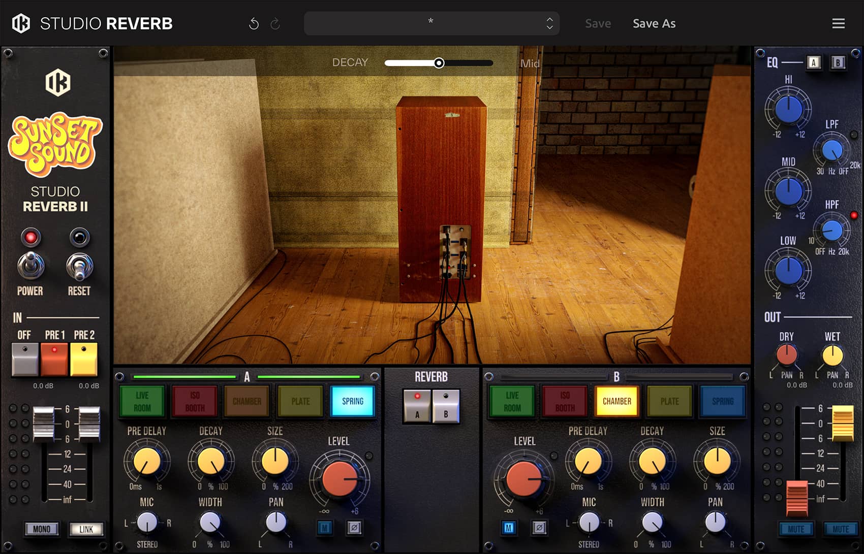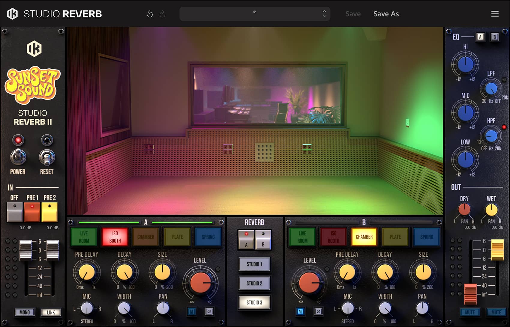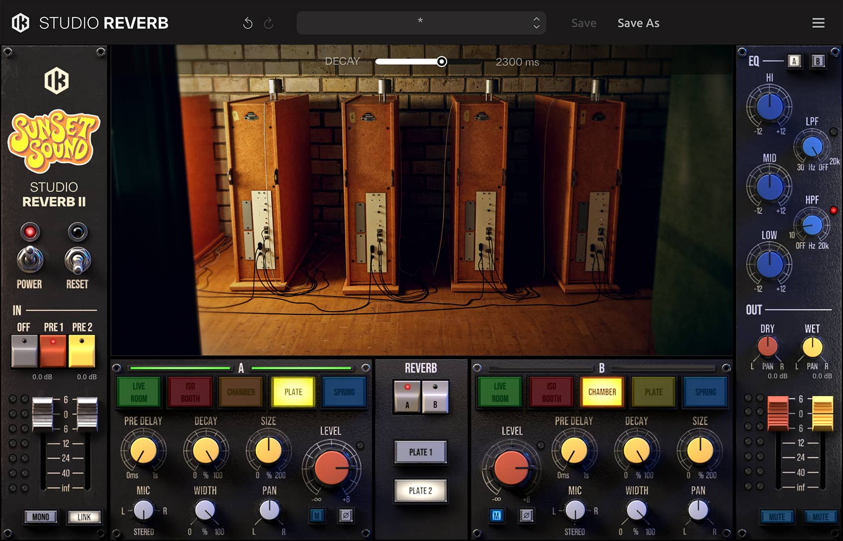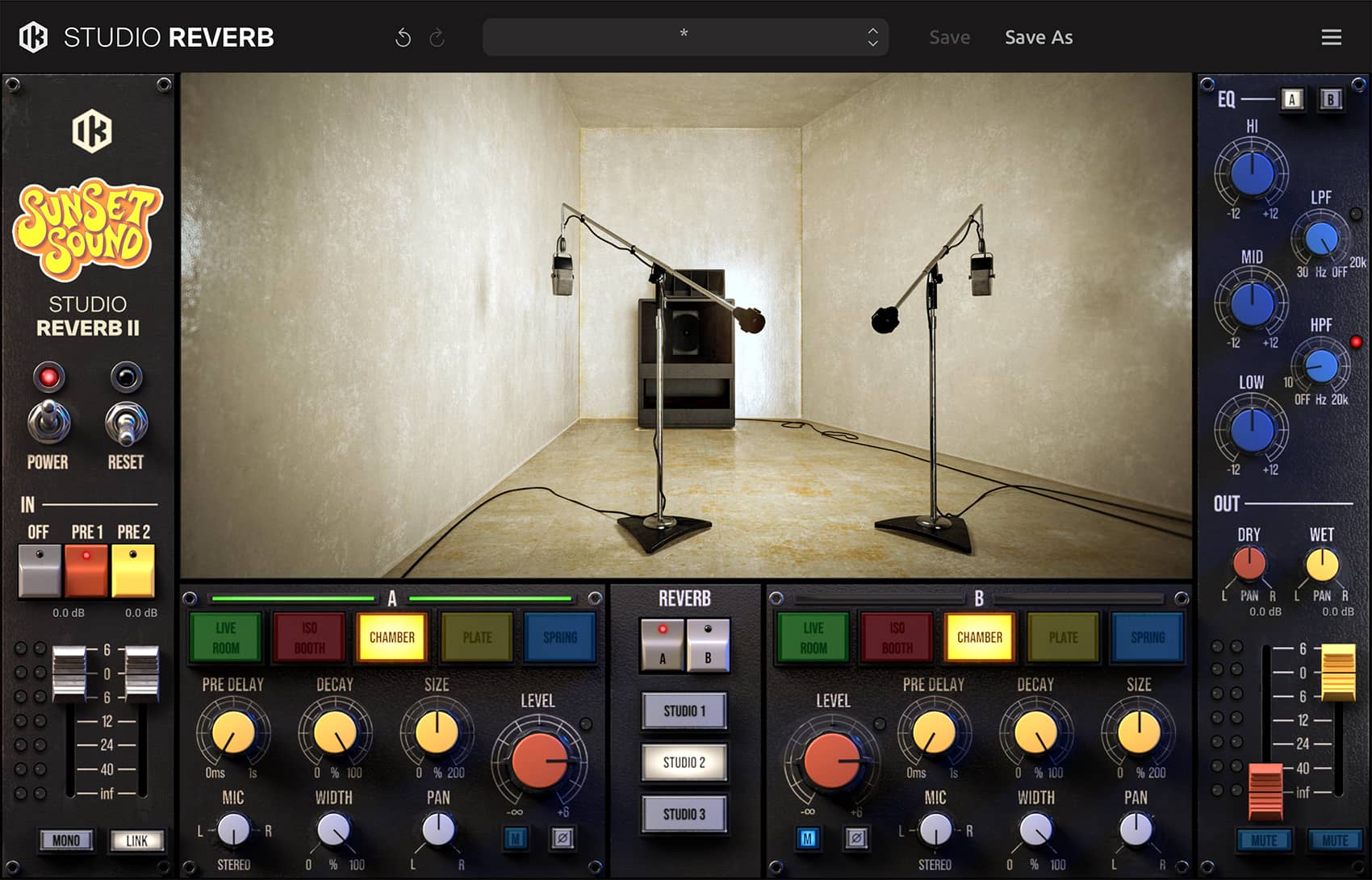 Sunset Sound Studio Reverb II features a fully independent dual-engine design.