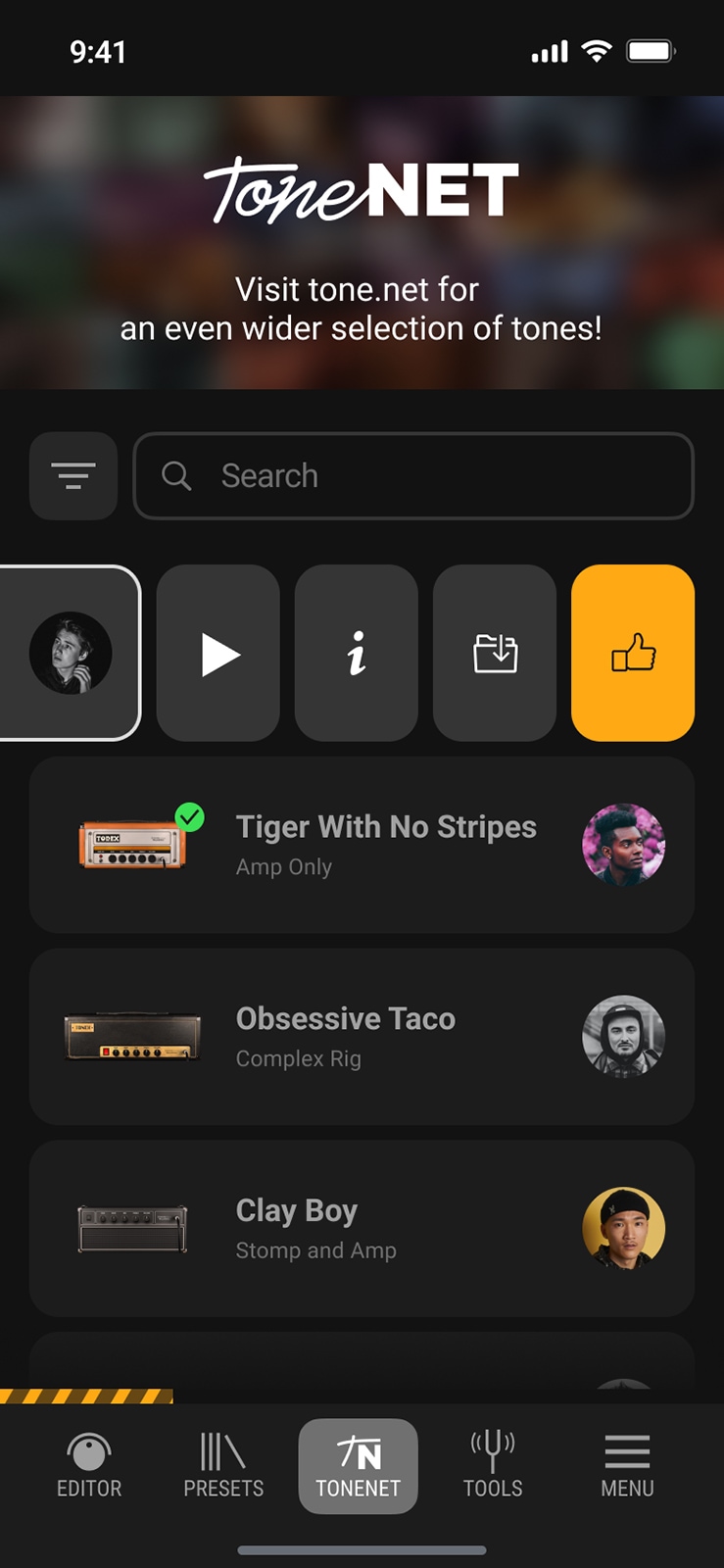 Easily search and download tones based on your favorite songs and artists. The active ToneNET and Tone Partner community uploads and shares the most desirable amps ever made, all easily searchable and ready to download or purchase.