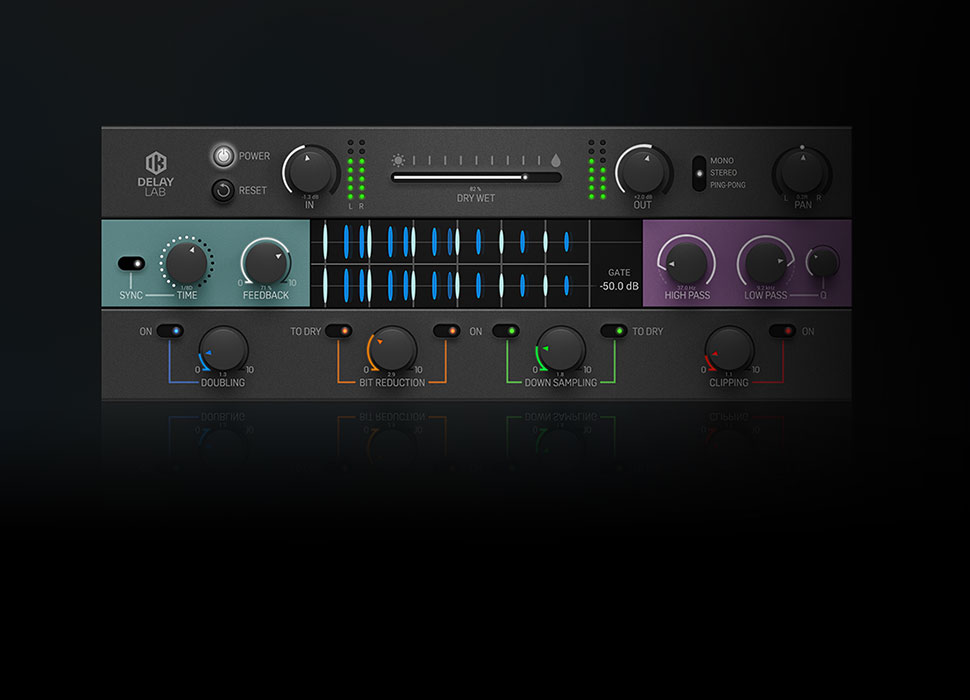 • Doubling, Bit Reduction and Down Sampling: Explore new sonic territories with these unique effects, adjustable from subtle to extreme intensities. You can add Bit Reduction and Down Sampling to the dry signal for even more sonic possibilities.