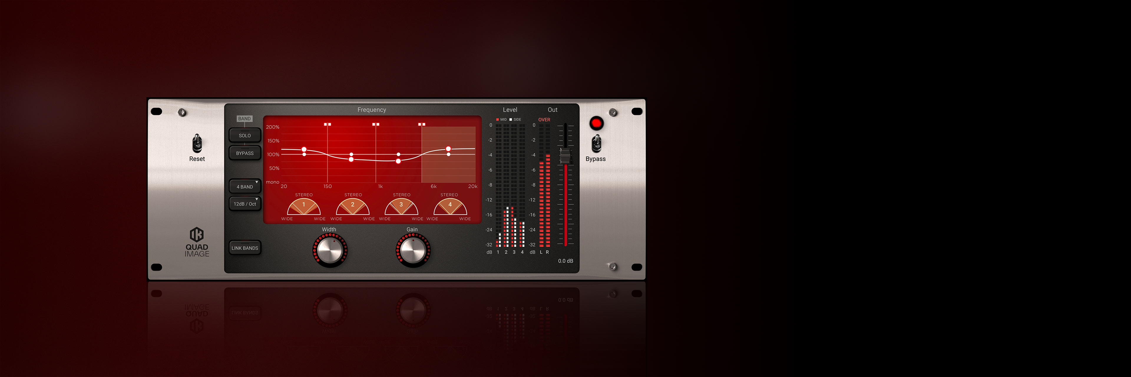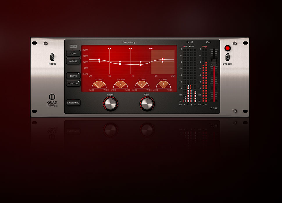 Combining the concept of M/S (Mid Side) matrix processing of the stereo field with multiband architecture, Quad Image effectively allows control over the stereo width of each frequency band. Its simple control set notwithstanding the Quad Image is a powerful processor.