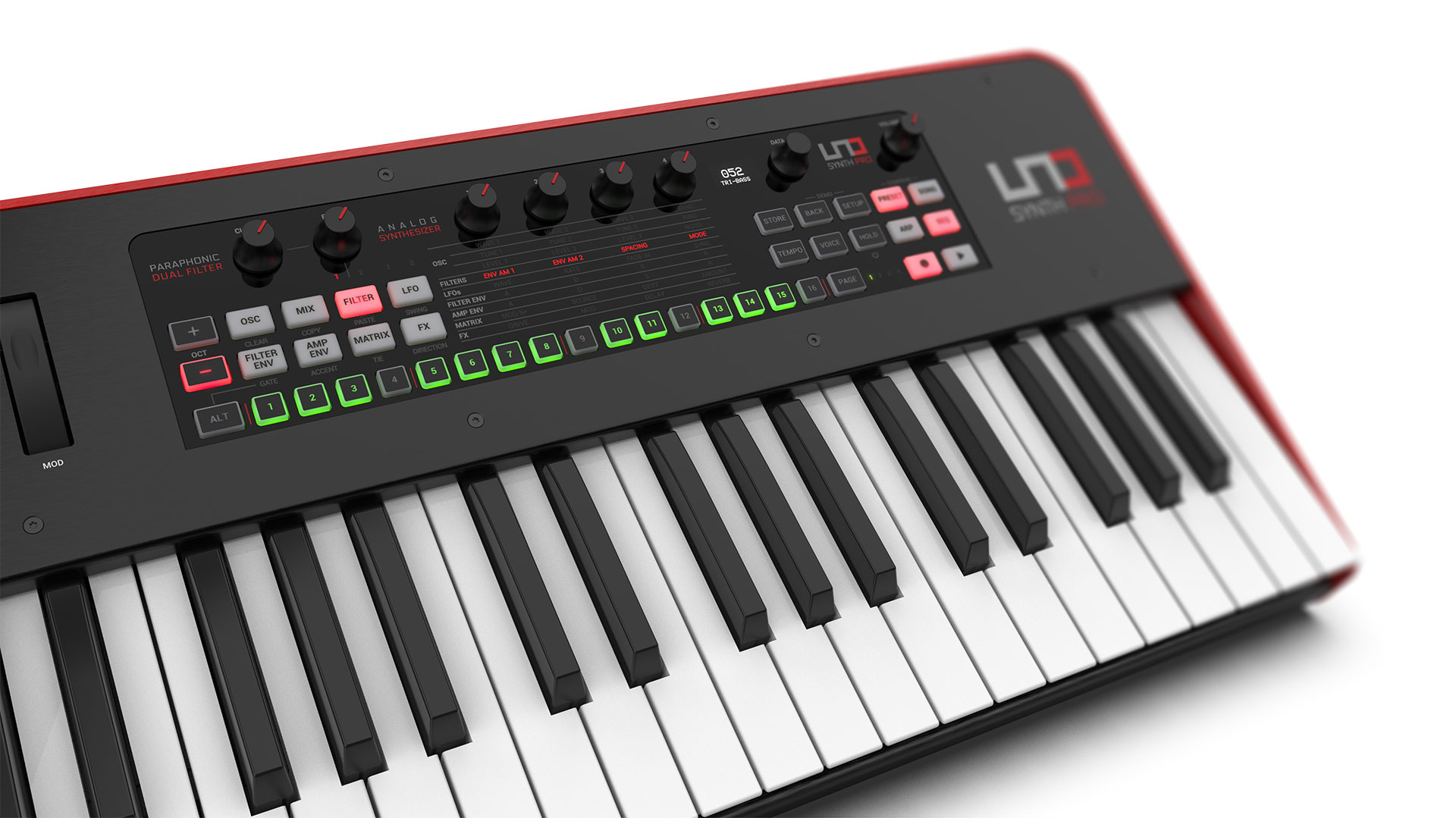 USB and 5-pin DIN MIDI In and Out make it easy to integrate with other synths, Mac/PC and mobile devices, and its assignable CV/Gate connections lets UNO Synth Pro interact effortlessly with your Eurorack or other modular system.